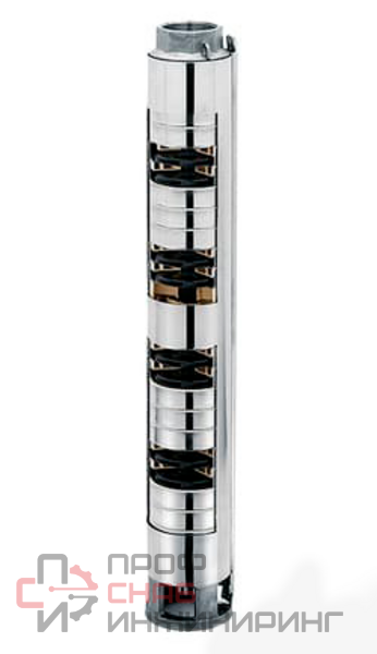 Центробежный скважинный электронасос диаметром 4 дюйма из нержавеющей стали AISI 304 с плавающими рабочими колесами и передним кольцом компенсации износа.
