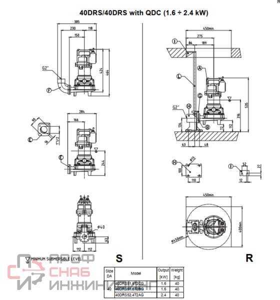 Чугунные погружные насосы с измельчителем из стали AISI 304, пригодны для перекачки стоков с волокнистыми включениями, кусками бумаги и ткани.Предназначены для установки на постоянном месте или использования в съемном варианте.