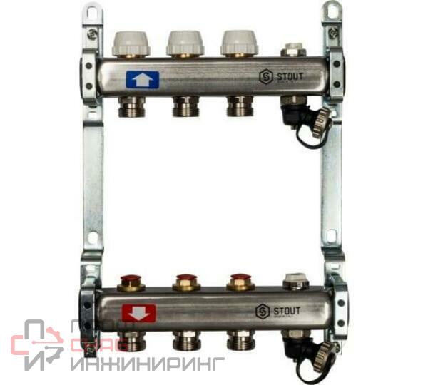 Коллектор из нержавеющей стали без расходомеров, с клапаном выпуска воздуха и сливом STOUT 3 выхода SMS-0932-000003 устанавливается в дома индивидуальной застройки или в системы отопления многоквартирных жилых зданий. Изделие способно подавать и распределять теплоноситель в системах водяного отопления или теплого пола. Коллектор подойдет для систем с тремя узлами.