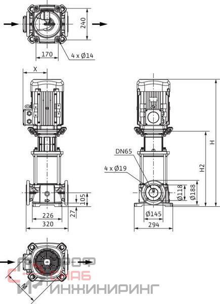 Высокоэффективный высоконапорный центробежный насос вертикального исполнения с линейными подсоединениями.В целом, нормальновсасывающий высоконапорный центробежный насос отличается особо компактной конструкцией. Подсоединение вала насоса и вала стандартного электродвигателя IEC осуществляется посредством продольно-свертной муфты. Отдельный шарикоподшипник с фонарем обеспечивает оптимальное восприятие осевых сил.Промежуточные подшипники гидравлической части и коррозионно-стойкий вал с втулкой из нержавеющей стали обеспечивают долгий срок службы.На корпус насоса и фонарь нанесено катафорезное покрытие.Специальные прочно смонтированные рым-болты облегчают установку насоса.Насос подходит для использования в системах водоснабжения и повышения давления, в промышленных циркуляционных установках, а также в контурах очистки технологической воды и в закрытых контурах охлаждения. Кроме того, его можно применять в установках пожаротушения, моечных установках, а также для ирригации.