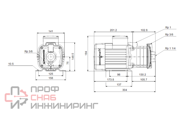 | Присоединение на всасывающей стороне | Rp 1¼ |