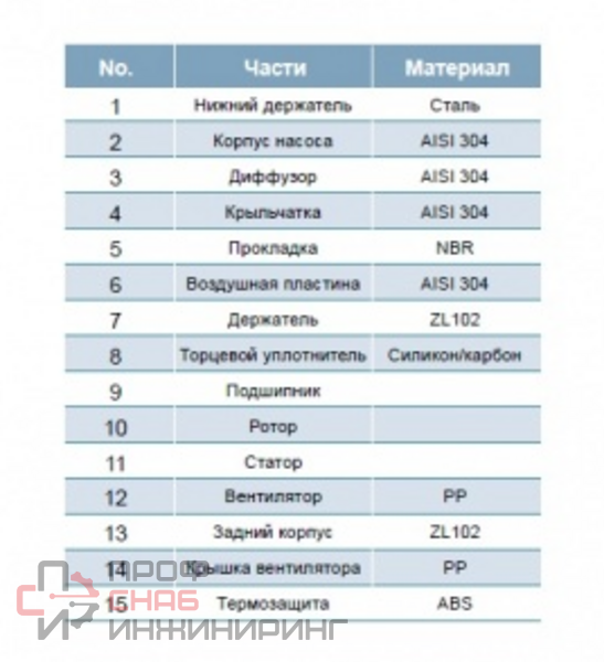 | Рабочее колесо (материал) | Нержавеющая сталь |