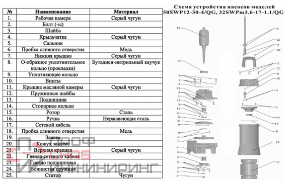 | Тип насоса | Погружной |