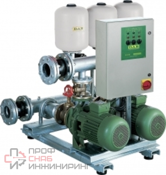 Данные насосные станции комплектуются двумяили тремя вертикальными многоступенчатымицентробежным насосами KV 3-6-10, расширительным баком, радиальным манометром, резьбовыми коллекторами из гальванизированной стали,обратным клапаном на всасывающем патрубке ишаровыми кранами на всасывающем и напорномпатрубках, отсечным краном манометра.