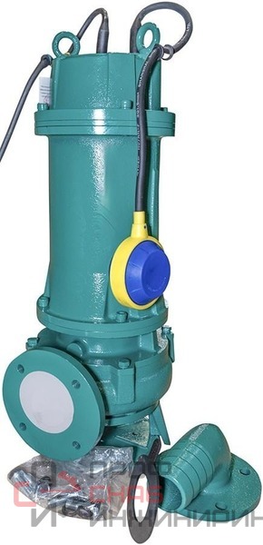 Погружные моноблочные центробежные электронасосы типа ЦМФ с режущим механизмом предназначены для откачивания бытовых (фекальных) и производственных сточных вод температурой до +40°С с PН 4-10, плотностью до 1200 кг/м3, в т.ч. содержащих длинноволокнистые включения. Данный насос не только может резать волокна, но и пропускать твёрдые частицы размером до 35 мм. Глубина погружения насоса: 0,5 - 5 м.Насосы линейки ЦМФ могут использоваться в качестве передвижного средства для аварийной откачки сточных вод из канализационных колодцев, подвалов, сборников и т.п., а также для стационарной установки в специально приспособленных канализационных колодцах, включенных в малые и средние системы канализации. В новом дизайне насосы более надёжны и имеют улучшенный механизм резки волокон.Технические характеристики:- материал проточной части - чугун,- рабочее колесо - чугун,- электродвигатель асинхронный, на 380В (если не указано иное). Класс изоляции: E. Степень защиты: IP X8,- наличие штуцера для подсоединения шланга во всех моделях,- двойное торцевое уплотнение вала: керамика-графит-NBR с масляной камерой. Камера между уплотнениями заполнена маслом, что позволяет валу насоса некоторое время вращаться без воды без риска быстрого перегрева и повреждения уплотнения.