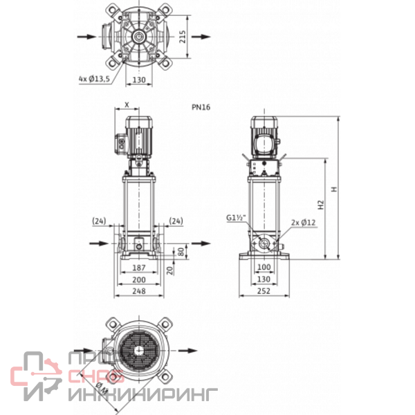| Присоединение на напорной стороне | Фланцевое DN40 |