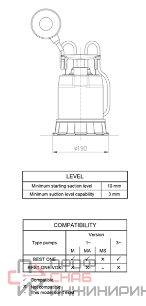 Погружной насос из нержавеющей стали AISI 304 с торцовым уплотнением (керамика/графит/NBR) в масляной полости увеличенного размера, что увеличивает ресурс и надежность насоса.У насоса BEST ONE рабочее колесо полуоткрытого типа, а у насоса BEST ONE VOX - вихревое, с увеличенным проходным сечением для уменьшения вероятности засорения.