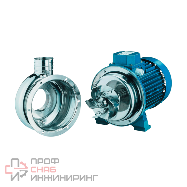 Центробежный насос с радиальным рабочим колесом открытого типа из нержавеющей стали AISI 304, пригоден для перекачки жидкостей с твердыми включениями диаметром до 19 мм. Корпус насоса выполнен из стали AISI 304 холодной штамповкой водой высокого давления, что обеспечивает высокий уровень прочности и надежности при низких гидравлических потерях.