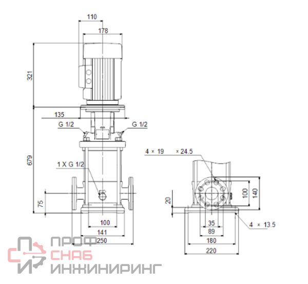 | Присоединение на напорной стороне | Фланцевое DN32 |