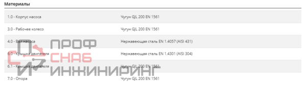 | Рабочее колесо (материал) | Чугун |
