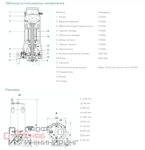 | Тип насоса | Погружной |
