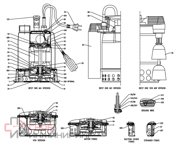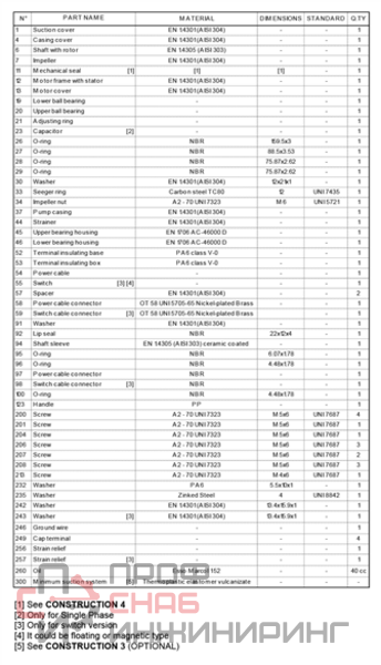 Погружной насос из нержавеющей стали AISI 304 с торцовым уплотнением (керамика/графит/NBR) в масляной полости увеличенного размера, что увеличивает ресурс и надежность насоса.У насоса BEST ONE рабочее колесо полуоткрытого типа, а у насоса BEST ONE VOX - вихревое, с увеличенным проходным сечением для уменьшения вероятности засорения.