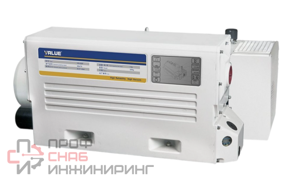 Моноблочный пластинчато-роторный насос Value VSV-300 создает вакуум в закрытых емкостях. Максимальный расход воздуха составляет 300 м³/час. Насос позволяет добиться достаточно глубокого вакуума. Остаточное давление с выключенным газобалластом составляет составляет 0,08 мбар. При газобалласте в положении №1 остаточное давление составляет 0,5 мбар, а при газобалласте в положении №2 остаточное давление 1,5 мбар.