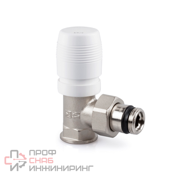 Вентиль на подачу угловой, ручной регулировки преобразуемый в термостатический, с механизмом предварительной настройки, соединение для медной или многослойной трубы, хвостовик с герметичной прокладкой.