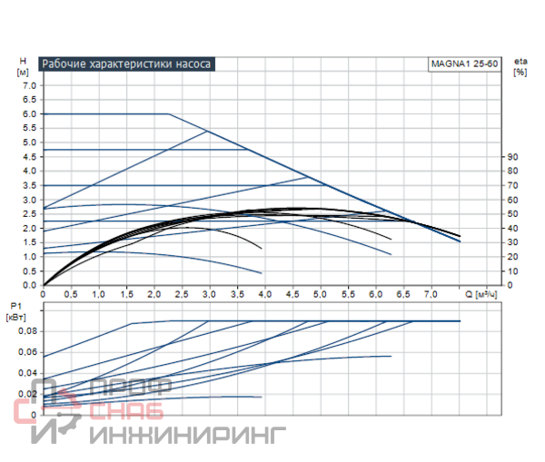 Насос циркуляционный Grundfos MAGNA1 25-60 - насос с простым выбором настроек, с герметизированным ротором, т.е. насос и электродвигатель составляют единый агрегат без уплотнения вала, всего лишь с двумя прокладками для уплотнения. Подшипники смазываются перекачиваемой жидкостью. Чтобы избежать проблем с раздельной утилизацией, огромное значение было придано применению как можно меньшего количества материалов. Насос не требует технического обслуживания. Очень низкая стоимость всего срока эксплуатации.