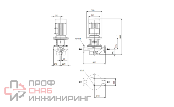 Одноступенчатый, без соединительной муфты, центробежный с всасывающим и выпускным патрубками на одной линии. Насос имеет конструкцию извлечения сверху, т.е. головную часть (электродвигатель, голову насоса и рабочее колесо) можно демонтировать для обслуживания или ремонта в то время, как корпус насоса остается на трубопроводе. Насос оснащен несбалансированным сильфонным уплотнением. Уплотнения вала соответствуют EN 12756. Подсоединение к трубопроводу с помощью фланцев PN 16 DIN (EN 1092-2 и ISO 7005-2). Насос оснащен вентилятором охлаждения асинхронного двигателя.
