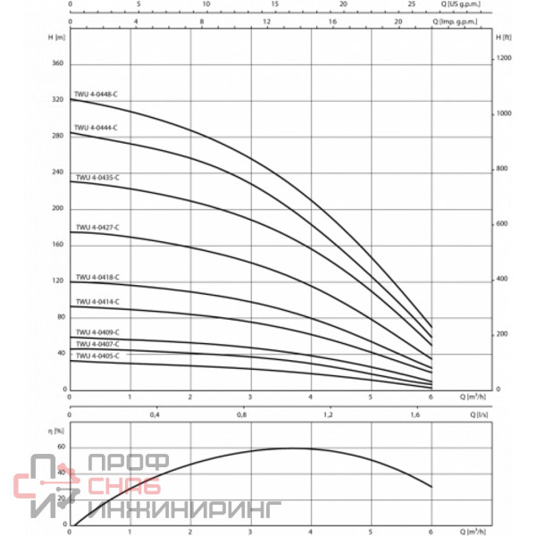 Полностью погружной многоступенчатый насос с радиальными или полуосевыми рабочими колесами в секционном исполнении для вертикального или горизонтального монтажа со встроенным обратным клапаном. Стойкий к коррозии электродвигатель однофазного или трехфазного тока для прямого пуска с водогликолевой смесью. Полностью герметичные и пропитанные смолой самосмазывающиеся подшипники с обмоткой с изолирующей лакировкой. Охлаждение электродвигателя происходит за счет перекачиваемой жидкости. Этот агрегат всегда должен эксплуатироваться в погруженном состоянии. Горизонтальный монтаж выполняется с охлаждающим кожухом. Для перекачивания воды из скважин с максимальной глубиной погружения 200 м и максимальным содержанием песка 50 г/м³.
