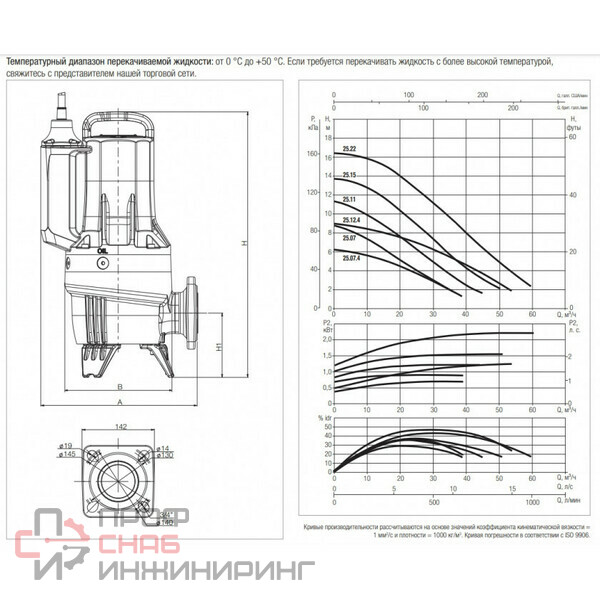 | Максимальная температура перекачиваемой жидкости, °С | 50 |