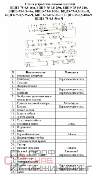 | Тип насоса | Погружной |
