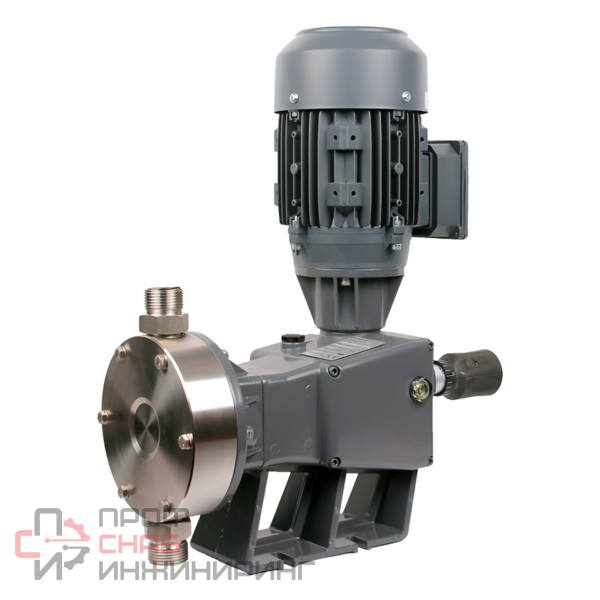 Серия D – мембранные дозировочные насосы. Корпус изготовлен излитого алюминия, защищенного эпоксидной, антикислотной краской.Производительность насосов регулируется при помощимикрометрической ручки, которая управляет длиной хода пистона.Регулировка производительности может осуществляться во время работынасоса. Насос приводится в действие вертикально расположеннымдвигателем. Коробка передач работает по принципу холостого хода(возврат пистона происходит при помощи пружины возврата).
