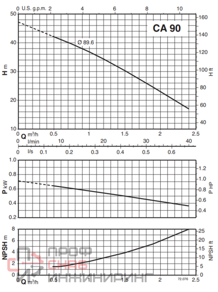 | Максимальная температура перекачиваемой жидкости, °С | 90 |