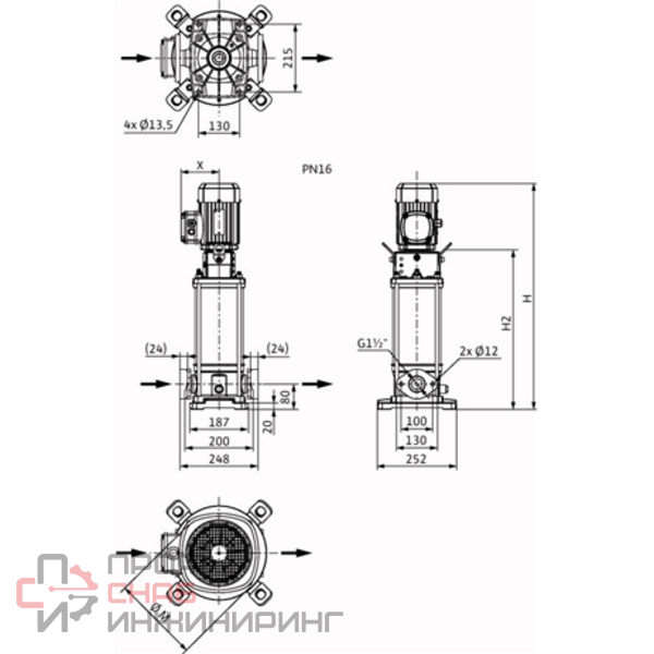 WILO HELIX V 1005-1/16/E/S/400-50 - высокоэффективный центробежный трехфазный нормальновсасывающий многоступенчатый насос в линейном исполнении. Предназначен для водоснабжения и повышения давления в коммунальной энергетике, широко применяем так же в ирригации, пожаротушении. Рабочие колеса выполнены из нержавеющей стали, максимальное рабочее давление до 25 бар. Присоединения к трубопроводу - фланцевые. Так же отличительной особенностью является удобная для технического обслуживания конструкция.