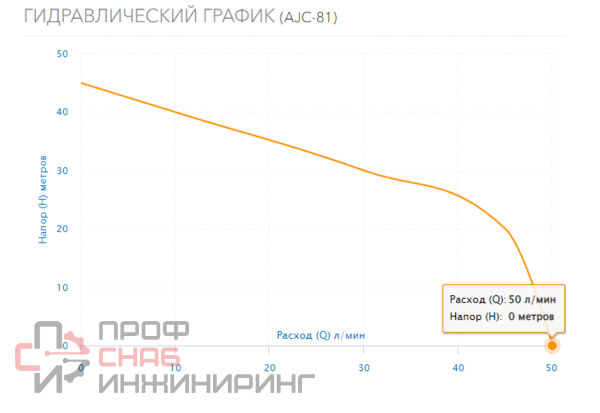| Максимальный напор, м.вод.ст. | 45 |