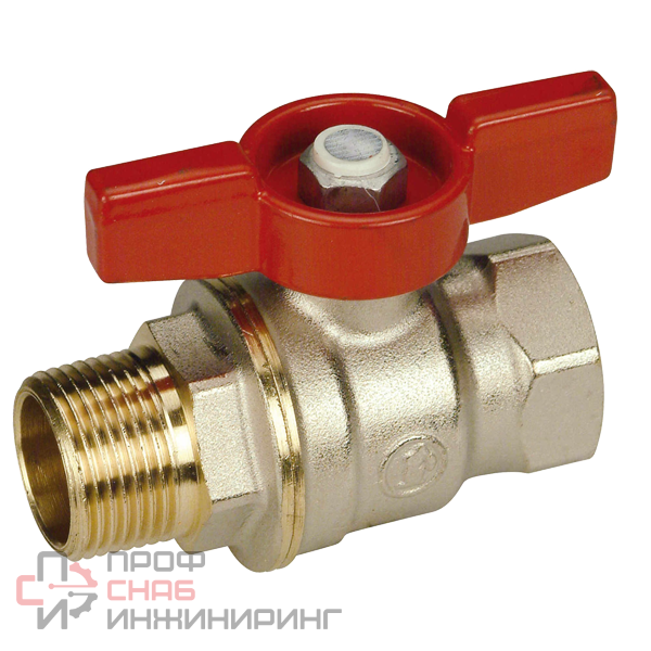 Шаровой кран, никелированный, с рукояткой-бабочкой, соединение с внешней / внутренней резьбой.