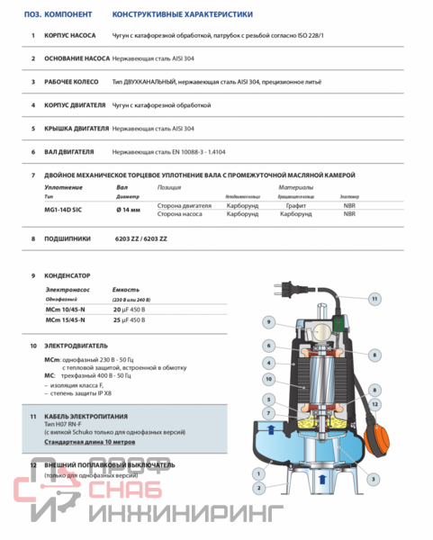 Электронасосы серии MC изготовлены из толстостенного чугуна, характеризующегося высокой прочностью, стойкостью к абразивному воздействию и долговечностью. Они оснащены ДВУХКАНАЛЬНЫМ рабочим колесом, которое позволяет перекачивать жидкости с присутствием во взвеси коротковолокнистых твердых частиц. Рекомендуются для перекачивания бытовых сточных и канализационных вод, смеси воды с грязью, поверхностных и грунтовых вод на таких объектах, как многоквартирные дома, промышленные здания, многоярусные гаражи, подземные парковки, мойки и т.д.