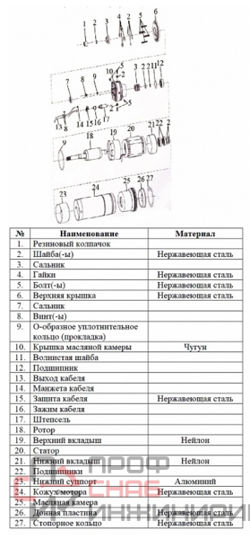 | Тип насоса | Погружной |