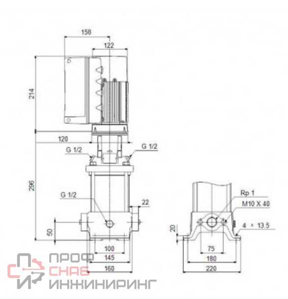 Вертикальный многоступенчатый центробежный насос Grundfos CRE 3-5 A-A-A-E-HQQE с всасывающим и напорным патрубками, расположенными на одном уровне ("ин-лайн"), что обеспечивает возможность установки в горизонтальной однотрубной системе. Головная часть и основание насоса из чугуна - все остальные контактирующие с перекачиваемой жидкостью детали из нержавеющей стали. Картриджное уплотнение вала обеспечивает высокую надежность, безопасное использование и легкий доступ для обслуживания. Вращение передается через разъемную муфту. Подсоединение к трубопроводу с помощью овальных фланцев с внутренней резьбой Rp.Насос оснащен синхронным 1-фазным электродвигателем на постоянных магнитах с воздушным охлаждением. Электродвигатель включает частотный преобразователь и ПИ-регулятор в клеммной коробке. Это обеспечивает постоянное плавное регулирование частоты вращения электродвигателя, а также возможность корректировки рабочих характеристик в соответствии с заданными требованиями.