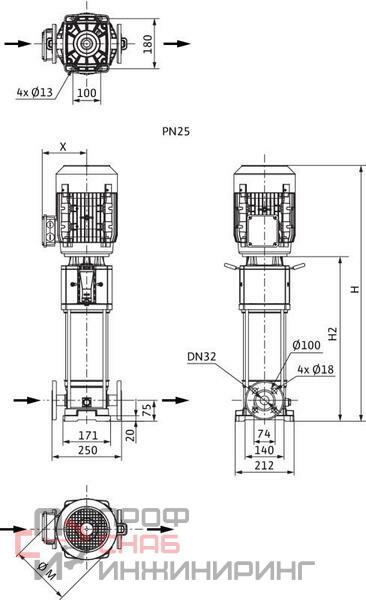 Высокоэффективный высоконапорный центробежный насос вертикального исполнения с линейными подсоединениями.В целом, нормальновсасывающий высоконапорный центробежный насос имеет компактную конструкцию и прост в техническом обслуживании. Подсоединение вала насоса и вала стандартного электродвигателя IEC осуществляется посредством продольно-свертной муфты.Отдельный шарикоподшипник фонаря обеспечивает оптимальное восприятие осевых сил. Промежуточные подшипники гидравлики и коррозионно-стойкий вал с втулкой из нержавеющей стали обеспечивают долгий срок службы. Специальные прочно смонтированные рым-болты облегчают установку насоса.Насос подходит для использования в системах водоснабжения и повышения давления, в промышленных циркуляционных установках, а также в контурах очистки технологической воды и в закрытых контурах охлаждения. Кроме того, его можно применять в установках пожаротушения, моечных установках, а также для ирригации.