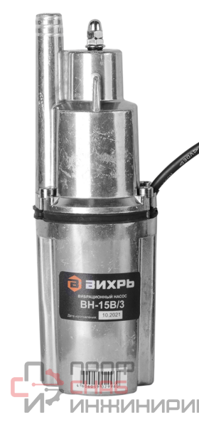 Вибрационный насос Вихрь ВН-15В/3 предназначен для подачи воды в бытовых условиях из скважин внутренним диаметром от 80 мм и более, может использоваться также для подачи воды из шахтных колодцев, резервуаров и открытых водоемов для полива садов и огородов. Насос способен подавать воду из водоемов, расположенных на значительном расстоянии от мест использования воды, горизонтально свыше 100 метров.
