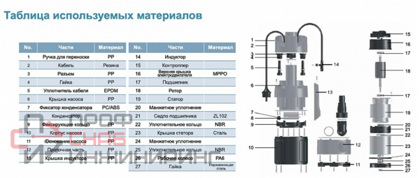 | Рабочее колесо (материал) | Полимер |