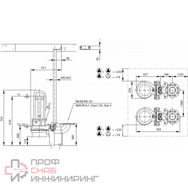Полностью затапливаемый погружной насос для отвода сточных вод для стационарной и мобильной установки в погруженном состоянии, для перекачивания загрязненной воды и предварительно очищенных сточных вод с фекалиями. Гидравлический корпус, рабочее колесо и корпус электродвигателя из серого чугуна. Электродвигатель насоса с сухим ротором в трехфазном исполнении с камерой уплотнений и датчиком контроля температуры обмотки электродвигателя. Уплотнение со стороны перекачиваемой жидкости и со стороны электродвигателей осуществляется двумя скользящими торцовыми уплотнениями независимо от направления вращения. Кабель электропитания длиной 10 м с кабельным вводом с продольной герметизацией.