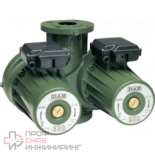 Циркуляционный насос DAB DPH 120/340.65 T для небольших промышленных систем отопления.Корпус насоса выполнен из чугуна. Рабочее колесо двигателя сделано из высокопрочного технополимера. Прибор имеет двухполюсный асинхронный двигатель с тремя скоростями вращения. Вал двигателя размещен на графитовых подшипниках, смазываемых перекачиваемой жидкостью. Данный насос является сдвоенным, что позволяет попеременно использовать один из насосов или в случае необходимости задействовать оба насоса. В этой модели встроен обратный клапан. При поломке одного насоса автоматически задействуется другой.Насос предназначен для перекачивания чистой жидкости, без твердых частиц и длинноволокнистых включений, химически нейтральной, по своим свойства напоминающей воду. Температура перекачиваемой жидкости должна быть в пределах от -10°С до +120°С.