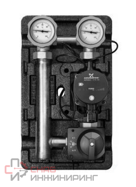Особенности насосных групп Meibes арт. ME 45890 EA Насосная группа с поддержанием температуры подающей линии Поколения 8. Материалы: сталь, латунь, EPP-термоизоляция. Трехходовой шаровой кран обратной линии с установленным обратным клапаном и рукояткой. Трехходовой шаровой кран в линии подачи, с рукояткой. Температурный датчик привода вмонтирован в корпус запорного устройства подающей линии. Термостатическая головка. Два термометра, шкала температур от 0 до 120°С. Трехходовой смеситель с регулируемым байпасом, который обеспечивает постоянный уровень подмеса. Стабилизатор жесткости конструкции группы. Аварийное предохранительное реле. Установочный размер для насоса составляет 180 мм. Без насоса в комплекте. Диапазон регулируемых температур 25-50°C, Kvs 0,95. С насосным модулем поставляются комплект крепления к стене, труба обратной линии, комплект соединительных уплотнений, съёмные кожухи термоизоляции. Рабочее давление 6 бар. Максимальная температура 110°C. Группы с термостатическим приводом в силу конструкции перепускным клапаном не комплектуются.