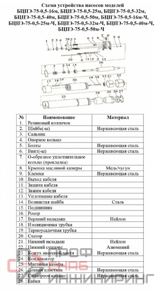 | Тип насоса | Погружной |