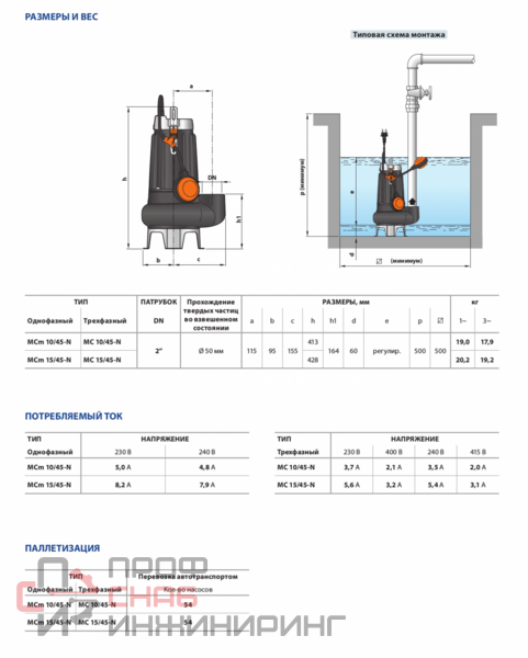 Фекальные электронасосы серии MC изготовлены из толстостенного чугуна, характеризующегося высокой прочностью, стойкостью к абразивному воздействию и долговечностью. Они оснащены ДВУХКАНАЛЬНЫМ рабочим колесом, которое позволяет перекачивать жидкости с присутствием во взвеси коротковолокнистых твердых частиц размерами до Ø 50 мм. Фекальные насосы MC рекомендуются для перекачивания бытовых сточных и канализационных вод, смеси воды с грязью, поверхностных и грунтовых вод на таких объектах, как многоквартирные дома, промышленные здания, многоярусные гаражи, подземные парковки, мойки и т.д.
