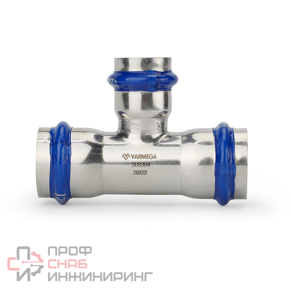 Тройник раструбный Varmega Inox Press переходной, используется для соединения труб разных диаметров. Для получения надежного неразъемного соединения трубы и фитинга потребуется специальный пресс-инструмент с насадками типа профиль «V». Трубы и пресс-фитинги из нержавеющей стали серии Varmega Inox Press предназначены для транспортирования жидкостей, применяемых в системах питьевого водоснабжения, низкотемпературных и высокотемпературных системах отопления и системах охлаждения. Трубы и фитинги могут применяться в качестве технологических трубопроводов для транспортирования жидкостей и газов, не агрессивных к материалу труб и уплотнителей фитингов.