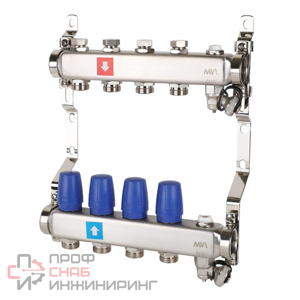 Коллекторные блоки MVI предназначены для распределения потока рабочей среды систем водяного отопления по потребителям. При этом под «потребителем» понимается отдельный нагревательный прибор или группа приборов, контур или петля «теплого пола», отдельные части или ветви системы. Коллекторный блок объединяет в себе подающий и обратный коллекторы из нержавеющей стали, запорные клапаны, термостатические клапаны (с возможностью установки электротермического сервопривода) и крепежные кронштейны. Коллекторные блоки могут работать как на водяном, так и низкозамерзающем (гликолевом) теплоносителе.