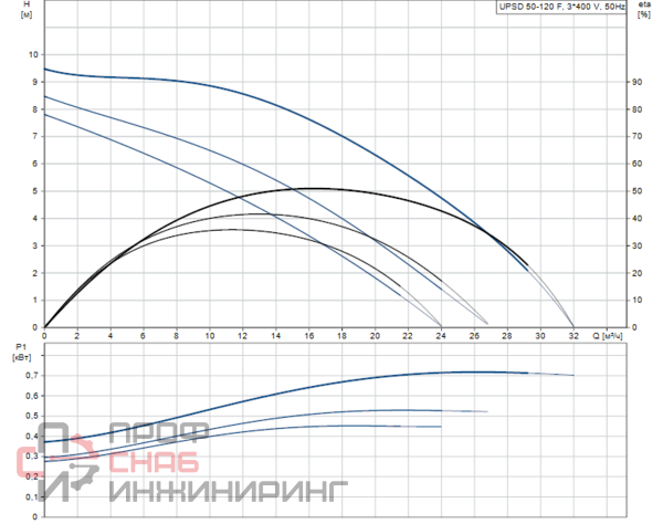 Grundfos UPSD 50-120 F 3×400-415V PN6/10 w/relay — это насос, оснащенный электродвигателем с мокрым ротором и защищенным статором, без сальниковых уплотнений, с двумя уплотнительными кольцами. Подшипники смазываются перекачиваемой жидкостью. Насос спроектирован для удобной вторичной переработки.