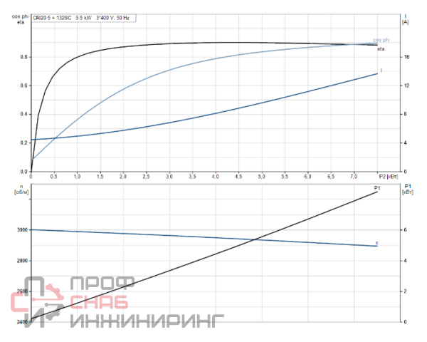 Вертикальный многоступенчатый центробежный насос с одинаковым уровнем расположения портов всасывания и нагнетания. Насосная часть и плита-основание сделаны из чугуна, остальные проточные части - из нержавеющей стали (EN 1.4301)