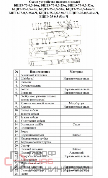 | Тип насоса | Погружной |