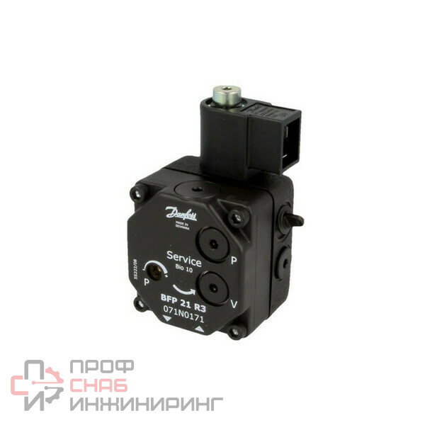 Насос для горелки Danfoss BFP53R8 071N6230 перекачивает топливо под давлением 7-15 бар. Заводская настройка – 10 бар. Применятся для сборки средних горелок с расходом до 110 л/ч. Рабочей средой является бензин, керосин и другое легкое топливо вязкостью не более 12 сСт