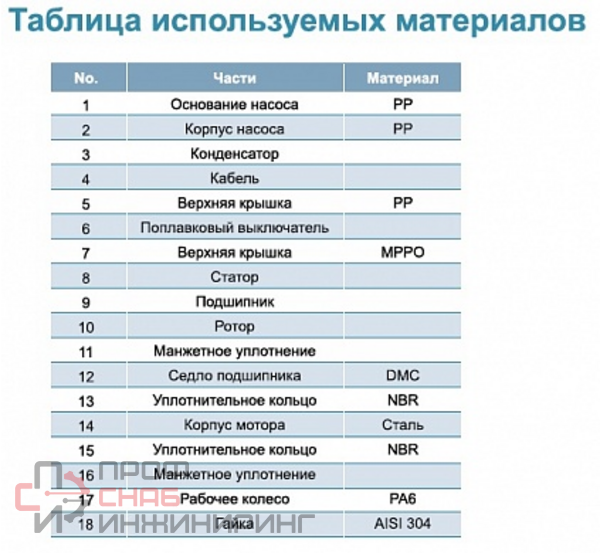 | Рабочее колесо (материал) | Полимер |