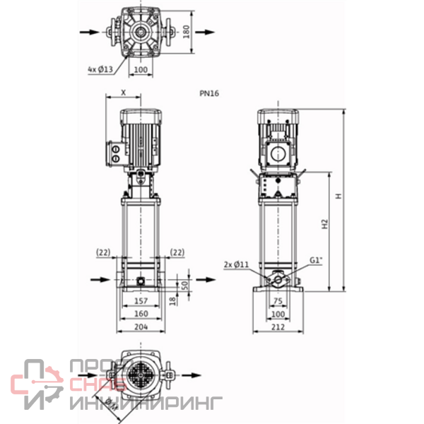 WILO HELIX V 214-1/16/E/S/400-50 - высокоэффективный центробежный трехфазный нормальновсасывающий многоступенчатый насос в линейном исполнении. Предназначен для водоснабжения и повышения давления в коммунальной энергетике, широко применяем так же в ирригации, пожаротушении. Рабочие колеса выполнены из нержавеющей стали, максимальное рабочее давление до 25 бар. Присоединения к трубопроводу - резьбовые. Так же отличительной особенностью является удобная для технического обслуживания конструкция.