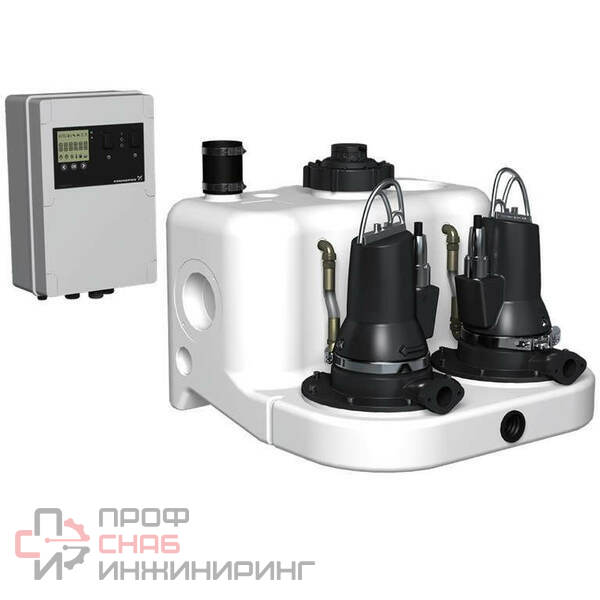 Канализационная насосная установка Grundfos MOG.15.3.2 3x400V Multilift поставляется полностью готовой к установке, состоит из герметичного резервуара с двумя насосами с режущим механизмом и погружными электродвигателями установленными на резервуар. Проводного контроллера вкл. Датчик уровня. (Обратные клапаны и выпускные трубы поставляются в качестве принадлежностей).Полностью герметичный резервуар обладает всеми необходимыми патрубками для подключения впускной трубы, сливной трубы, вентиляционные трубы и ручного мембранного насоса (принадлежность).Резервуар содержит 7 входных патрубков по периметру. Выходной патрубок DN100 позволяет подключить трубопроводы от 180 и до 315 мм без переходников. DN100 и DN50 входы на каждой стороне. DN150, DN50 вход на верхней части резервуара. Multilift на подвержен коррозии, а также герметичный и осадок на дне минимальный. Насос с режущим механизмом, вихревым рабочим колесом типа Vortex и погружными электродвигателями, безопасная масляная камера для заливки масла между двумя уплотнениями вала. Напорный патрубок с внутренней резьбой 1 1/4".LC221 контроллер с микропроцессором оснащен дисплеем для полной возможности мониторинга. Насос и датчик подключен к контроллеру с 4 м или 10 м кабеля и длины трубы. Кабель питания 1,5 м с вилкой (с фазоинвертором для 3-х фазный двигатель). Бесконтактные, пьезо-резистивный датчик давления подключаемый внутри шкафа, контролируется контроллером, с точностью до миллиметра и отображается на дисплее. Контроллер для тепловой защиты электродвигателя и контроля работы насоса. Тепловая защита электродвигателя состоит из термического переключателя в обмотке.