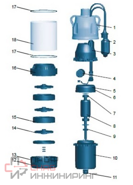 Многоступенчатый погружной насос предназначен для перекачки и подачи чистой воды в бытовых условиях, например из резервуаров, колодцев, бассейнов, прудов, для полива сада, огорода, а также других бытовых нужд.