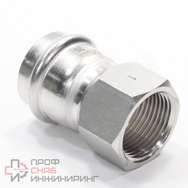 Пресс-фитинг из нержавеющей стали с внутренней резьбой обеспечивает соединение тонкостенной стальной трубы с резьбовым элементом монтируемой системы. Область применения – трубопроводы водоснабжения, отопления, иные инженерные и технологические установки с рабочей температурой до 120 °С и давлением до 16 бар.